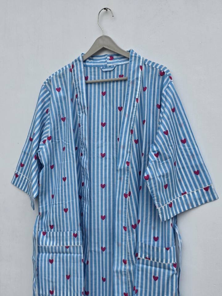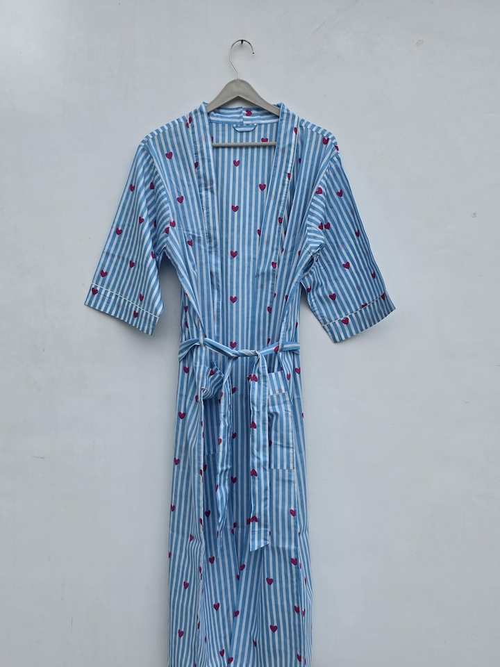 Romántico Kimono de Algodón 100% con Estampado de Bloques, Cuello en V, de Secado Rápido, Largo, para Primavera, Bata de Dama de Honor, Ropa de Dormir de Verano