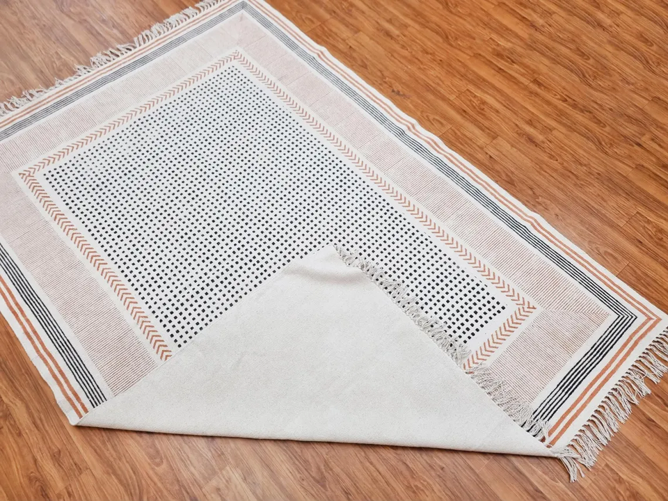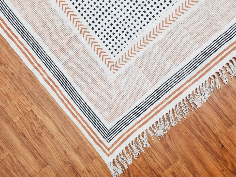 Alfombra de algodón con estampado de bloques, alfombra India hecha a mano, alfombra decorativa Dhurrie para sala de estar