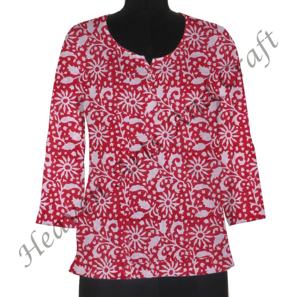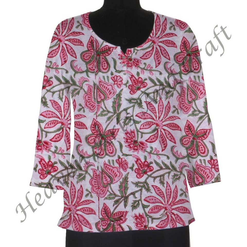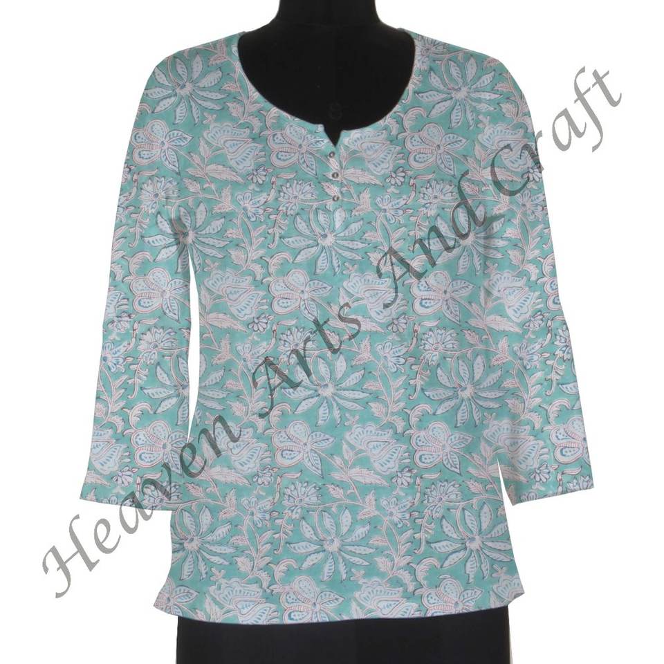 Top con estampado de bloques para mujer, diseños de Kurti para ropa informal, Kurtis de algodón indio para mujer en India, ropa informal de algodón con estampado Floral