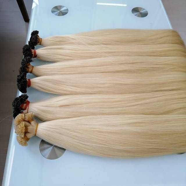 Extensiones de cabello humano vietnamita de punta plana rubia Procesamiento ruso Técnica eslava Virgen Textura suave y sedosa Exportación de fábrica