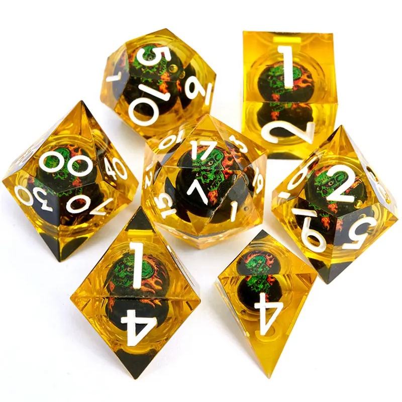 Sangre roja rugiente cráneo poliédrico resina epoxi dados mazmorras y dragones borde afilado dados mágicos