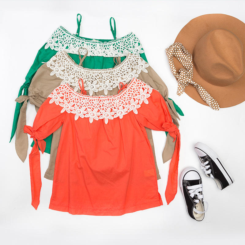 Nombre:Blusas de manga 3/4 con hombros descubiertos de nuevo diseño de primavera para niña