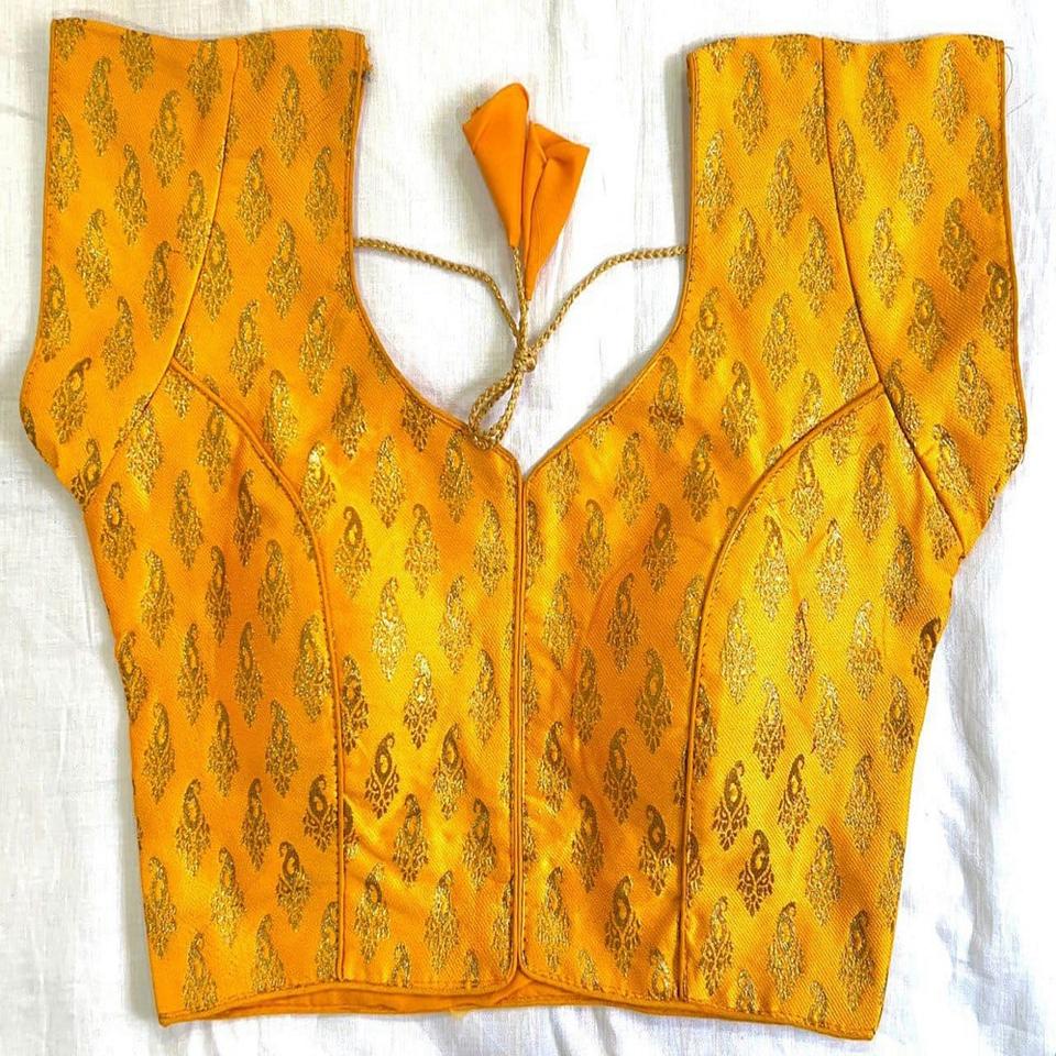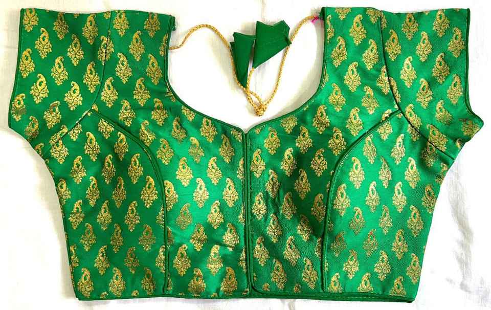 Blusa de seda banarasi, blusa con diseño abierto en la parte delantera, sin gancho en esta blusa, blusa con cuello redondo