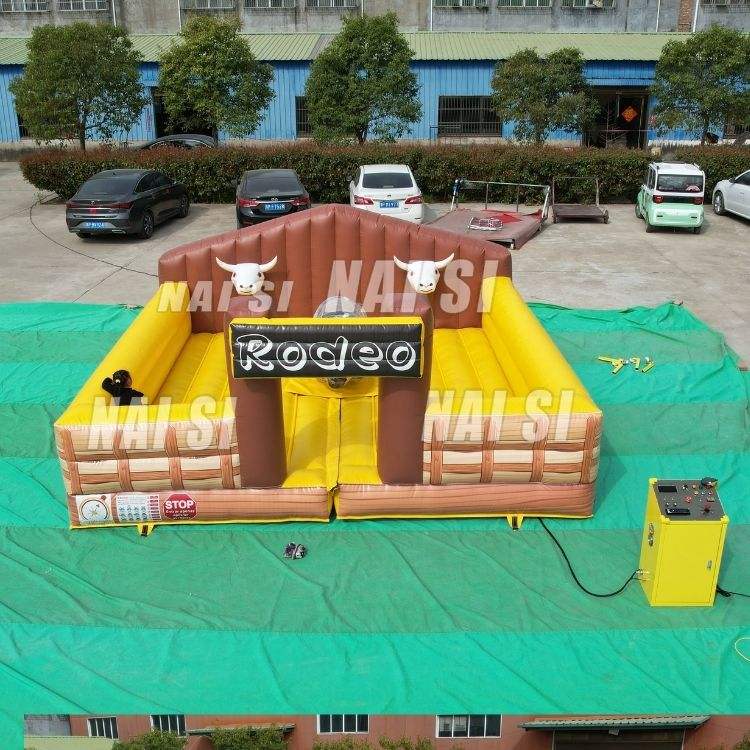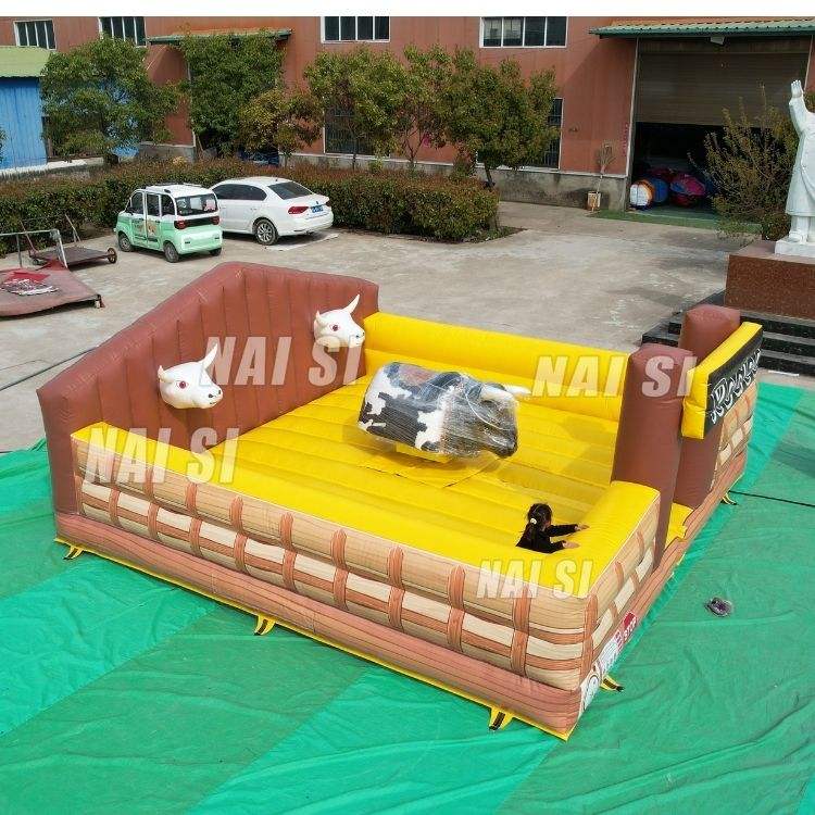 Toro Mecánico Inflable Comercial para Rodeo con Colchón de Rebote para Parques de Diversiones y Eventos al Aire Libre