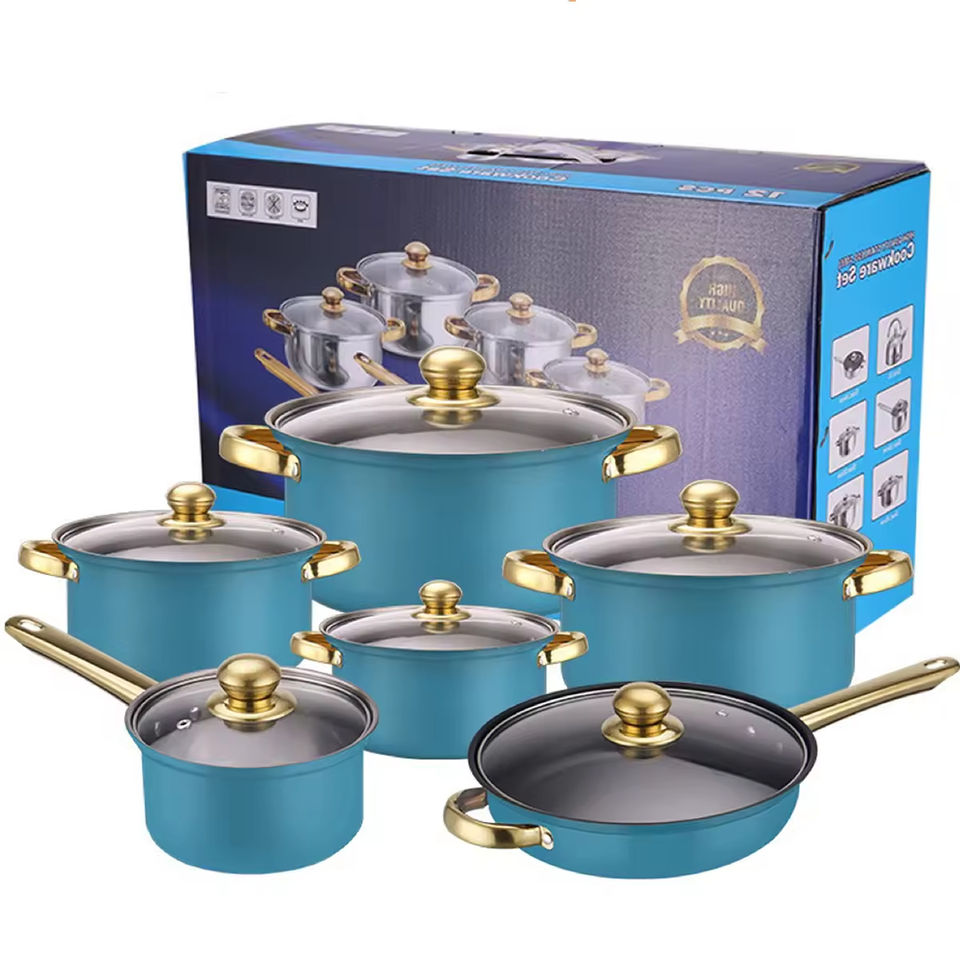 Juego de Ollas Multifuncionales de Acero Inoxidable Azul de 12 Piezas, Olla para Leche, Utensilios de Cocina
