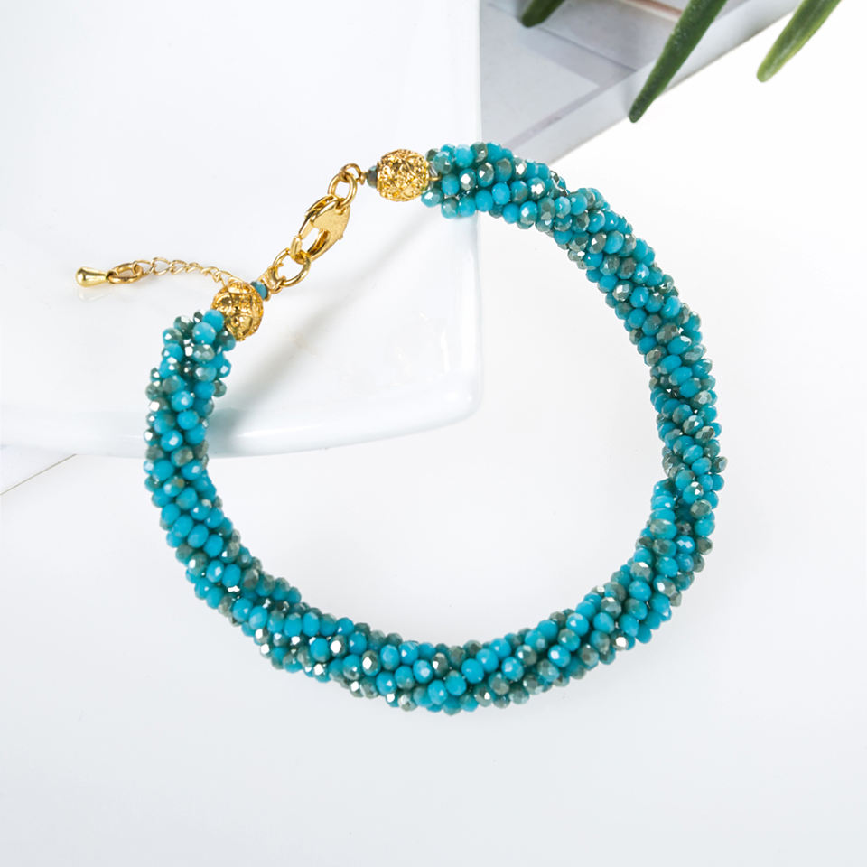 Pulsera de Cristal Natural Azul de 4 Hileras, Elegantes Brazaletes de Cristal