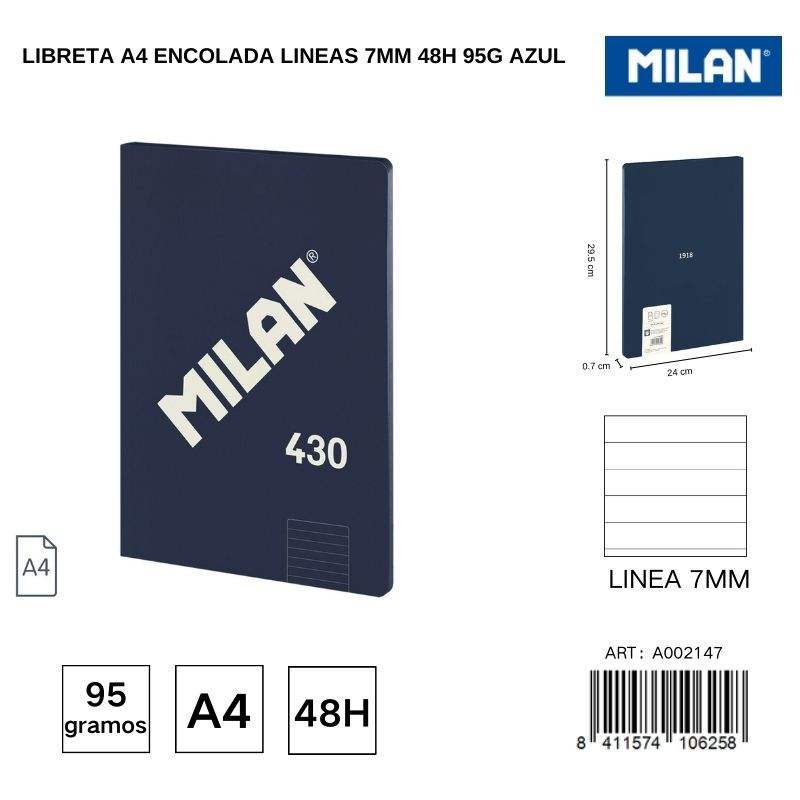 Cuaderno A4 azul de 48 páginas con líneas de 7mm Estilo espiral de encuadernación térmica de 95g-para uso escolar y de oficina