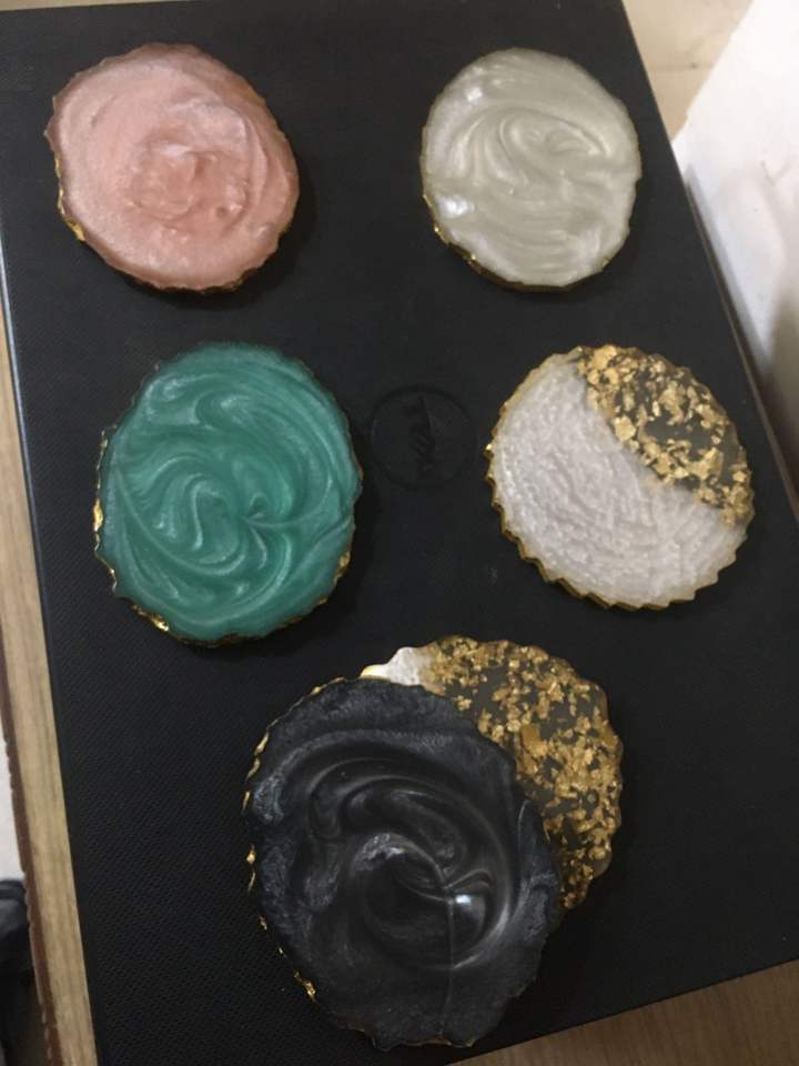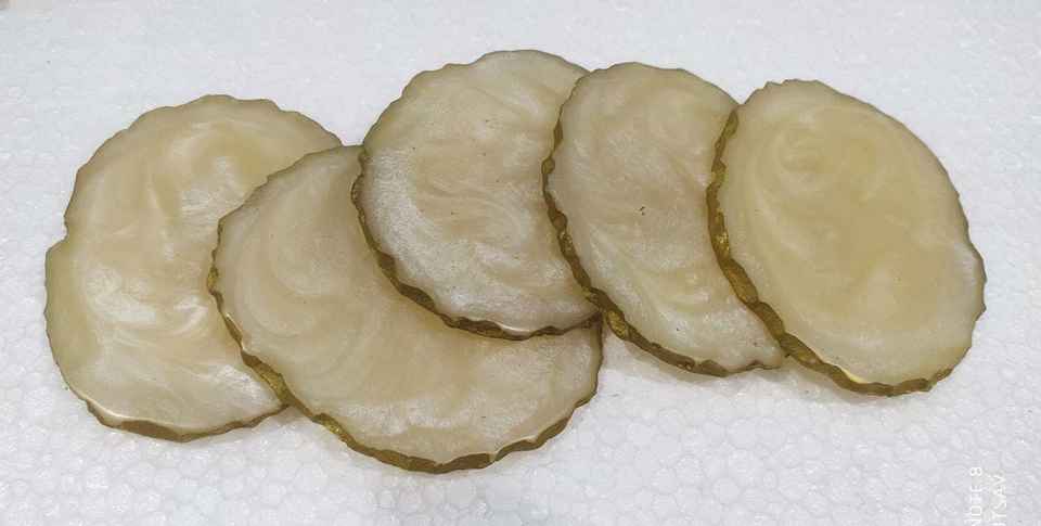 Posavasos de resina Natural absorbente azul, posavasos de resina dorado