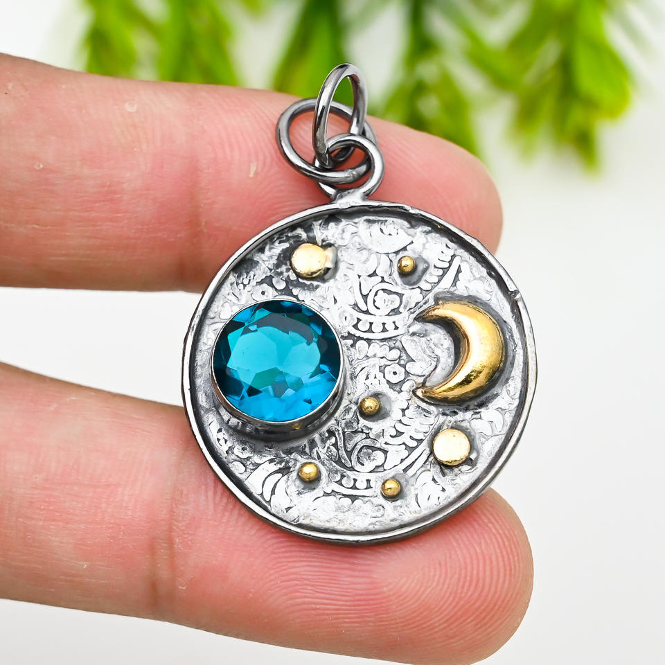Colgante de apatita azul, 10mm, corte de laboratorio, piedra preciosa creada, plateado, lujo, elegante, hecho a mano, regalo de aniversario de boda