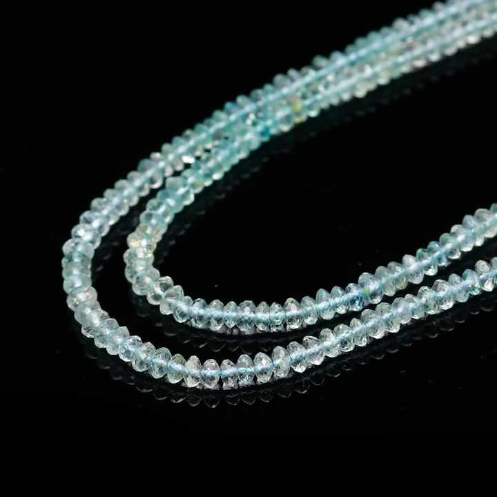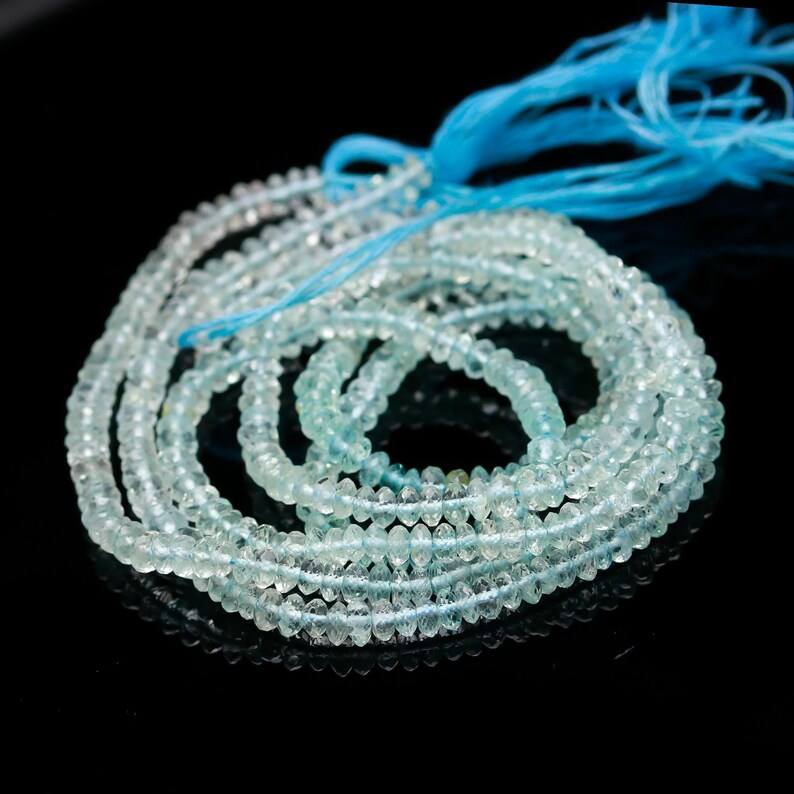 Cuentas de Rondelle facetadas de Aguamarina azul, cuentas de Aguamarina con forma de Rondelle 3,5mm 100% naturales, cuentas de Aguamarina para la fabricación de joyas
