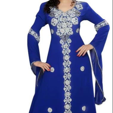 Cuentas azules y piedra trabajo Georgette cosido a mano ODM árabe marroquí Kaftan característica transpirable