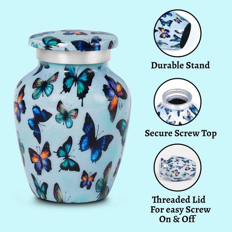 Mini urnas de mariposa azul para cenizas humanas pequeñas para urnas de recuerdo para mujer pequeñas urnas decorativas pequeñas de 3 pulgadas 1 ud.