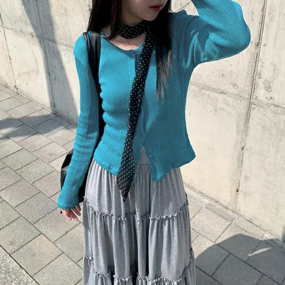 Cárdigan de Punto Azul con Botones para Mujer, Suéter Casual de Manga Larga, Prenda de Punto Ligera y Moderna para Damas