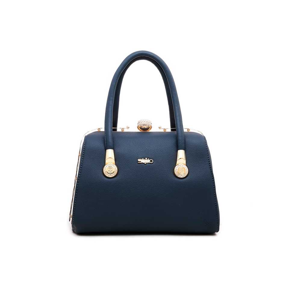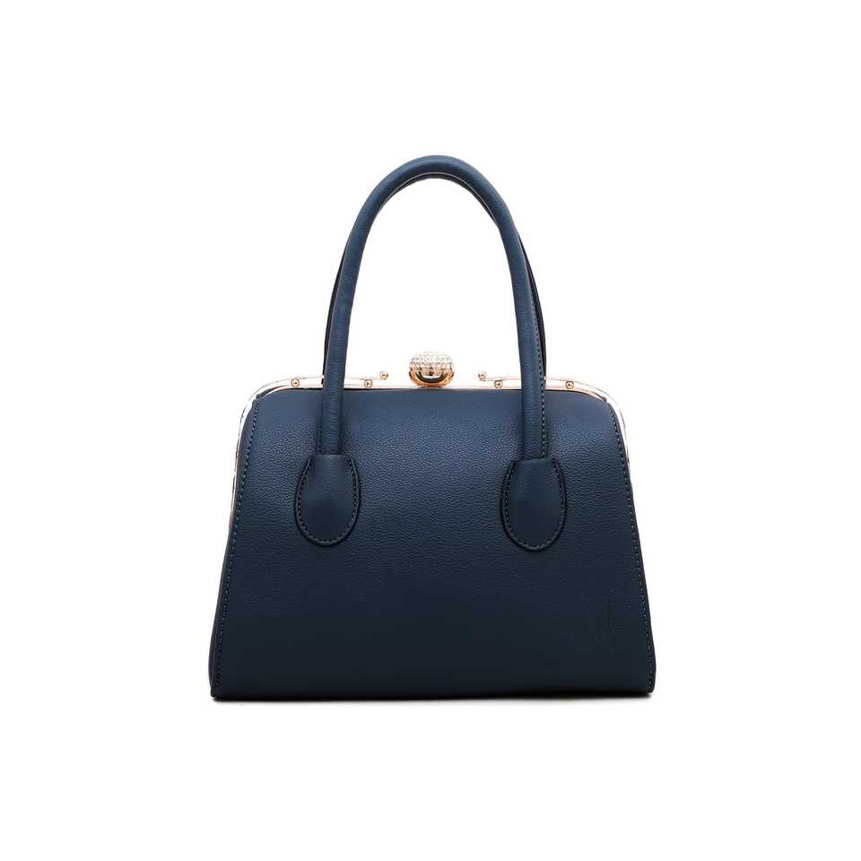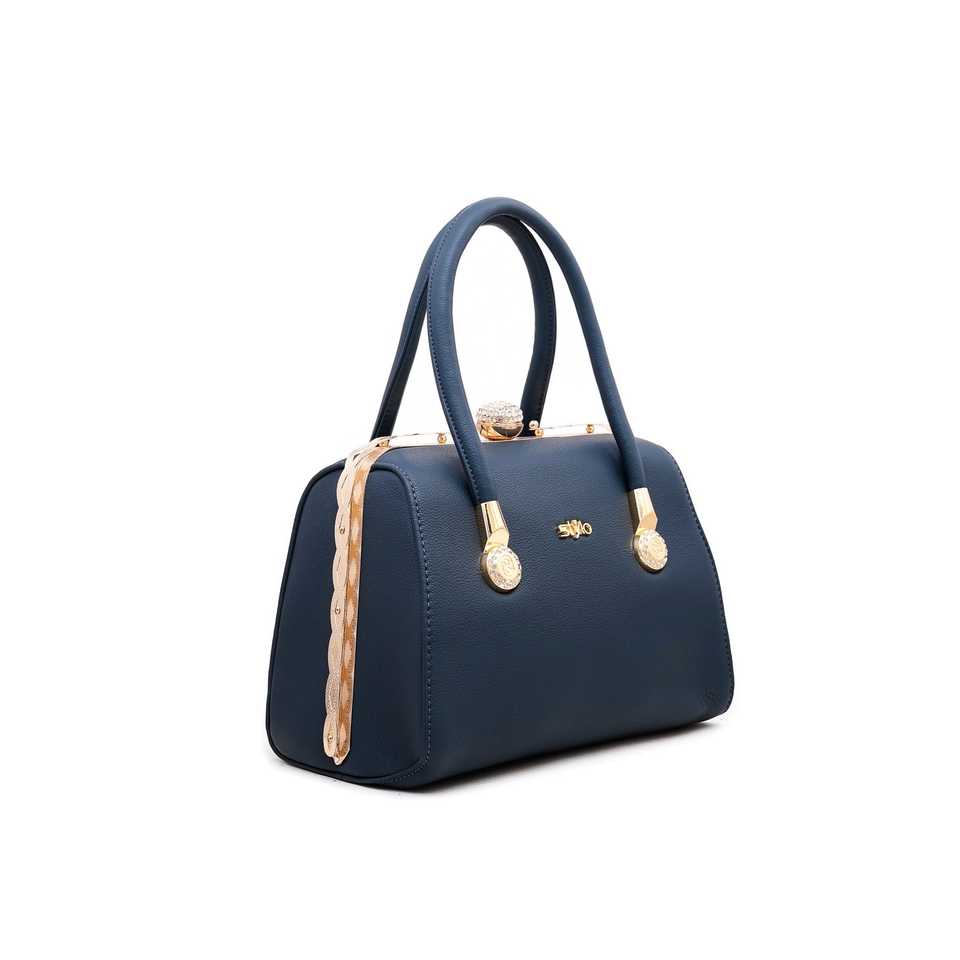 Bolso de mano informal azul P35824 Tamaño pequeño Una manija Cuero de vaca Correa de rafia Decoración de rayas Logotipo personalizado Fancy Doctor