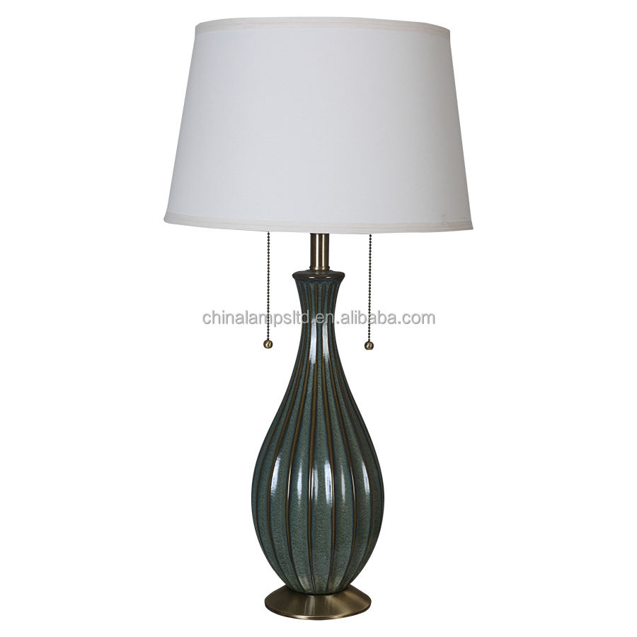 Lámparas de mesa de cerámica azul para dormitorio de hotel y hogar con bombillas incandescentes Fuente de alimentación de CA