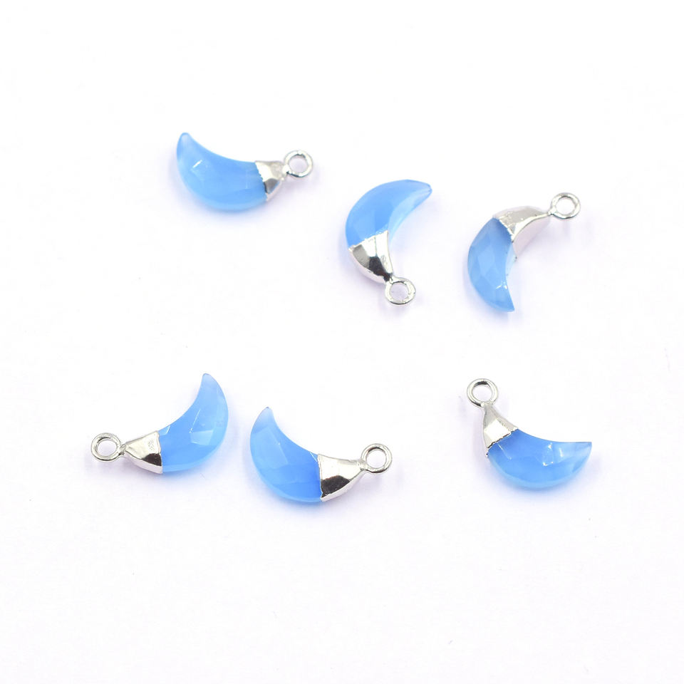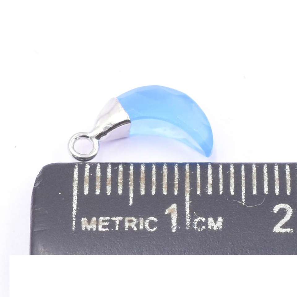 Colgante de Calcedonia Azul de 11 mm a 13 mm con Forma de Luna, Chapado en Plata sobre Latón, con Argolla para Fabricación de Joyas