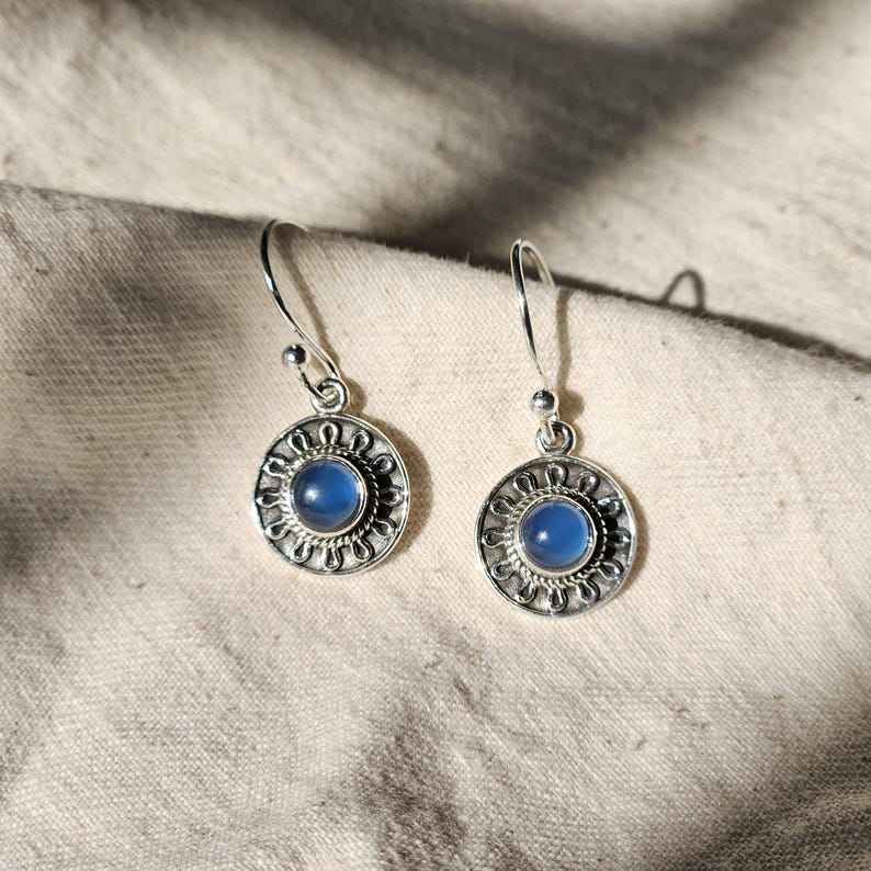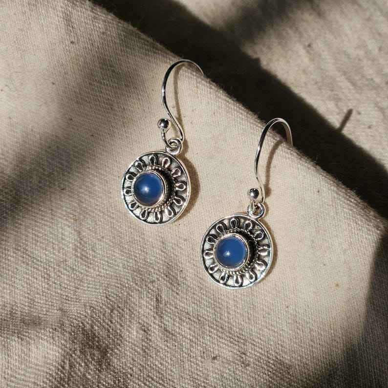 Pendientes de gota de piedras preciosas de Calcedonia azul chapados en oro Plata de Ley 925 Vintage boda fiesta desgaste joyería regalo para ella