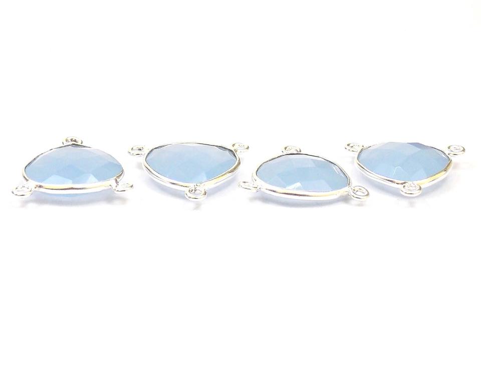 Azul Calcedonia piedras preciosas plateado corazón forma bisel conectorNombre de la joyería