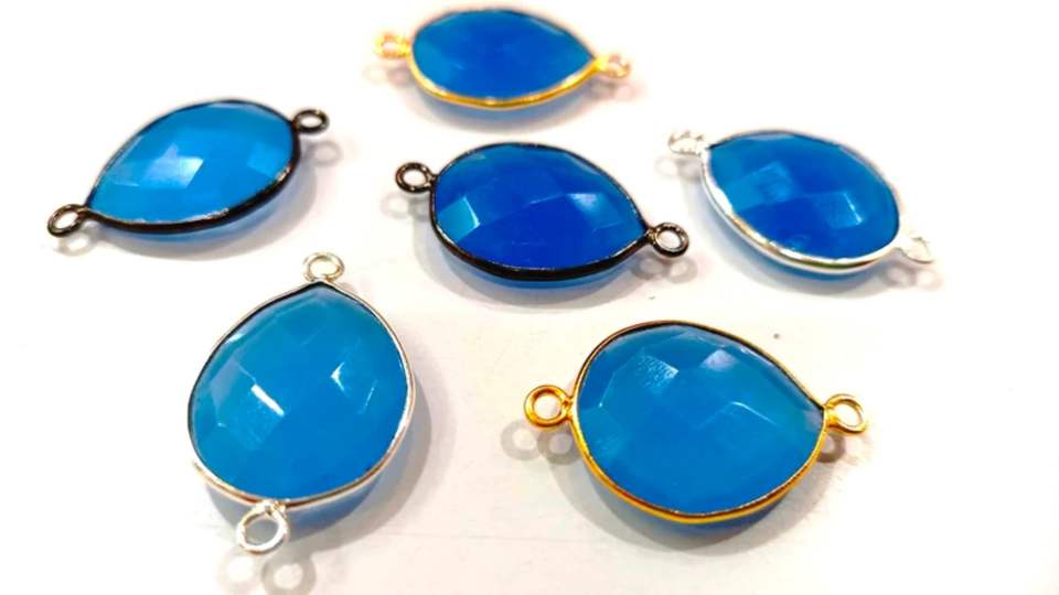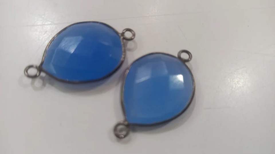 Blue Chalcedony Hydro Quartz Briolette Pear Shape Bisel Conector 15x18mm Tamaño Double Loop Charms