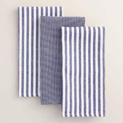 Juegos de toallas de cocina de gofres tejidos de algodón de secado rápido ecológicos a cuadros azules con Guantes para horno y soportes para ollas, personalizables