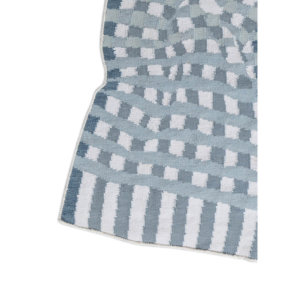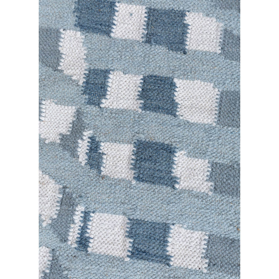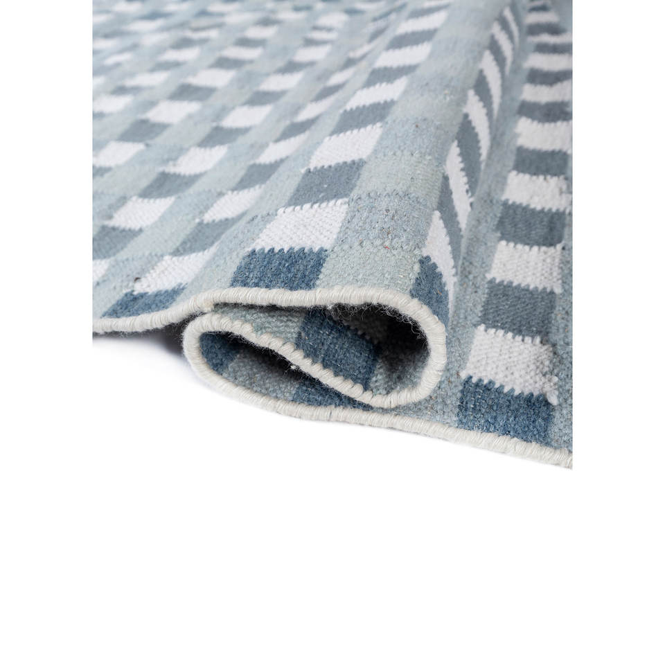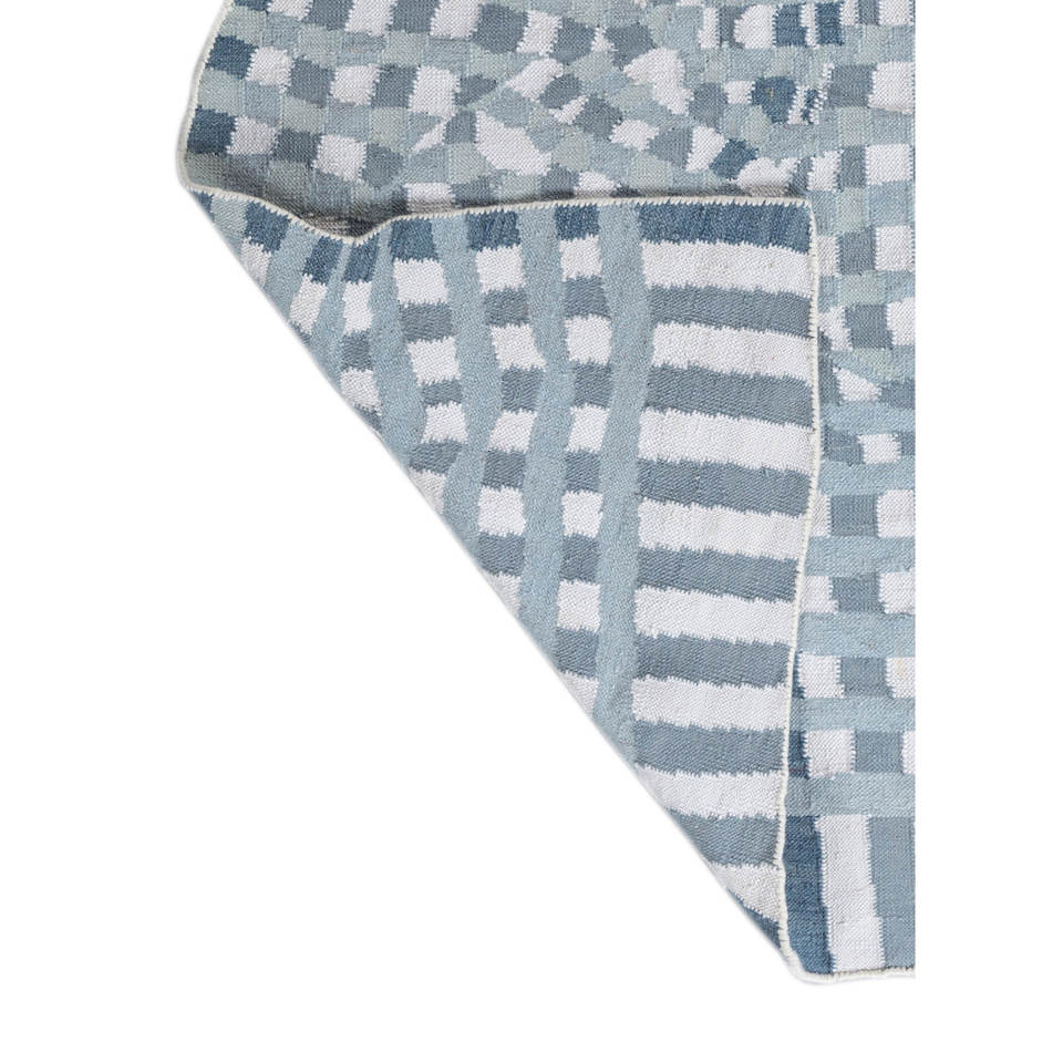 Alfombras de Lana Tejidas Planas con Diseño de Cuadros Azules ADWP-13084, Rectangulares de Algodón Orgánico para Pasillo, 9x12, para Decoración de Sala de Estar