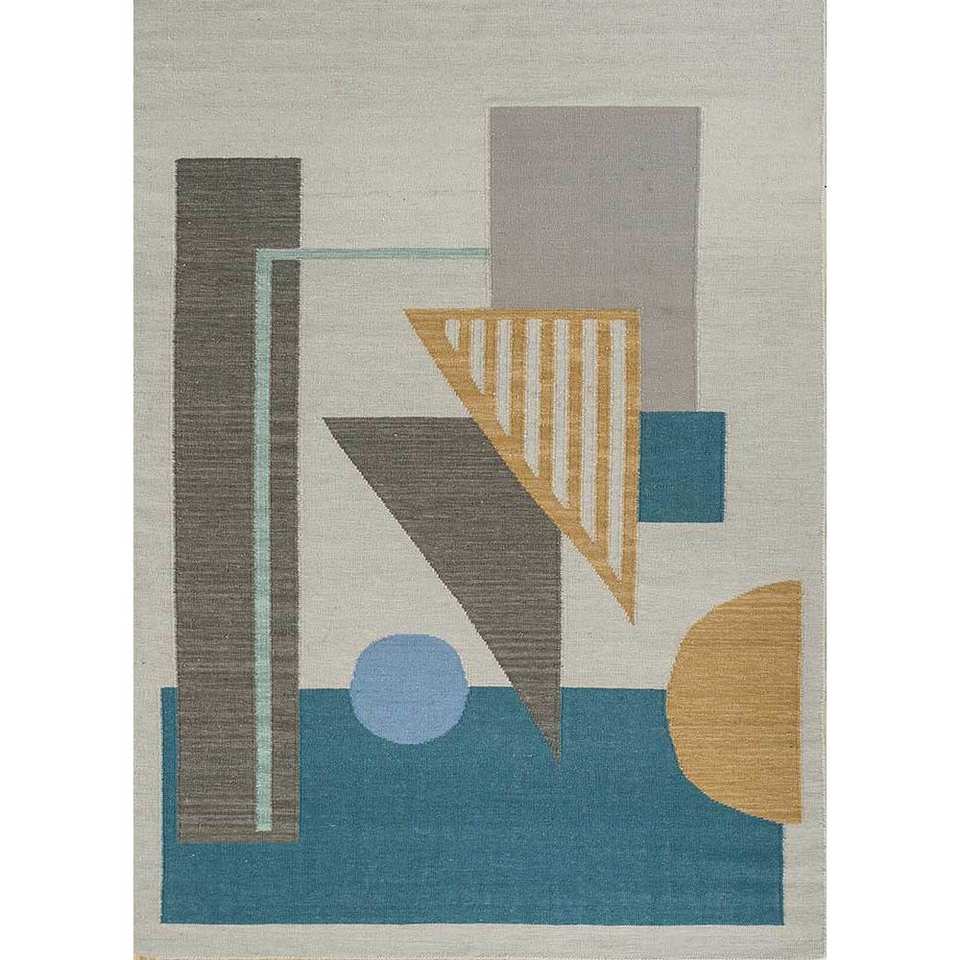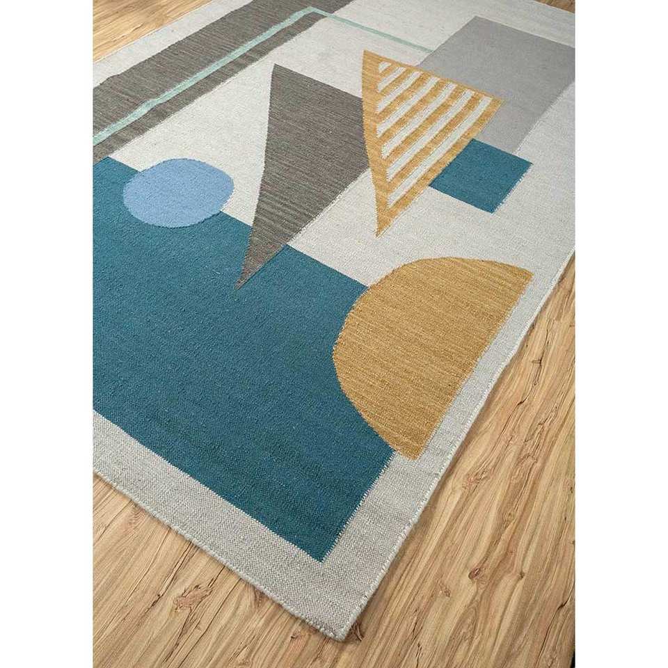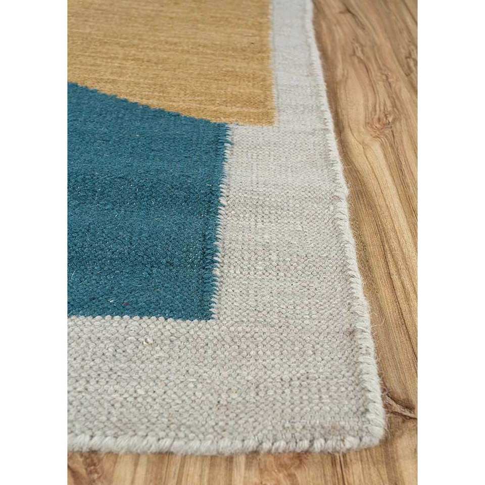 Alfombras de lana de tejido plano con diseño de cuadros azules Adwl-13090, patrón abstracto para el hogar, pasillo, rectangular, tipo rompecabezas, de viscosa para sala de estar y dormitorio