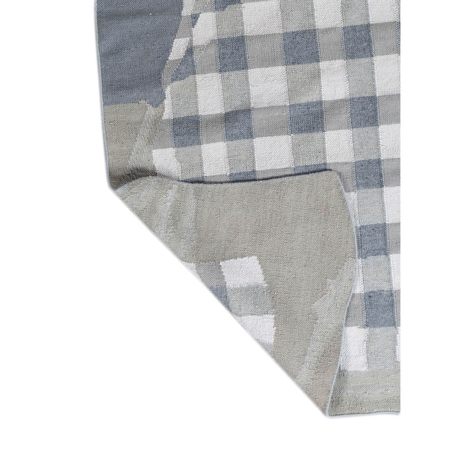 Alfombras de Lana Hechas a Mano con Diseño de Cuadros Azules Adwp-13085, Tejido Plano para Uso Doméstico, Rectángulo Grande con Patrón de Diamantes para Sala de Estar, Dormitorio, Habitación Juvenil