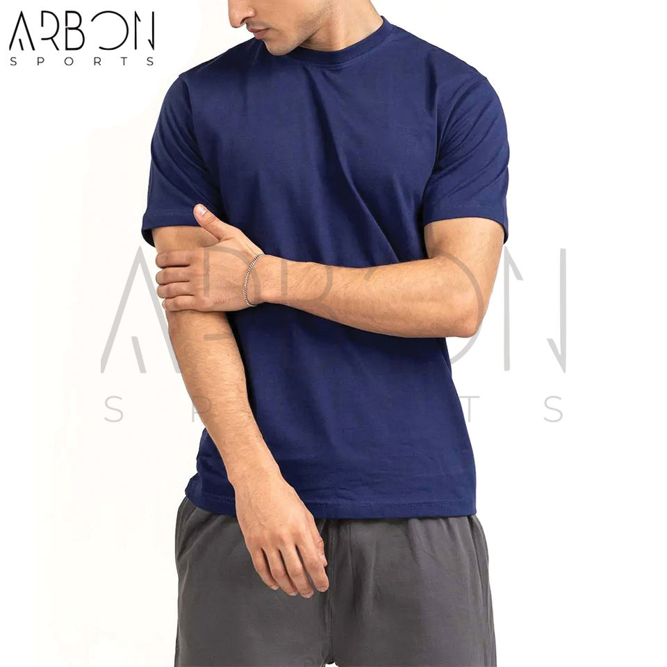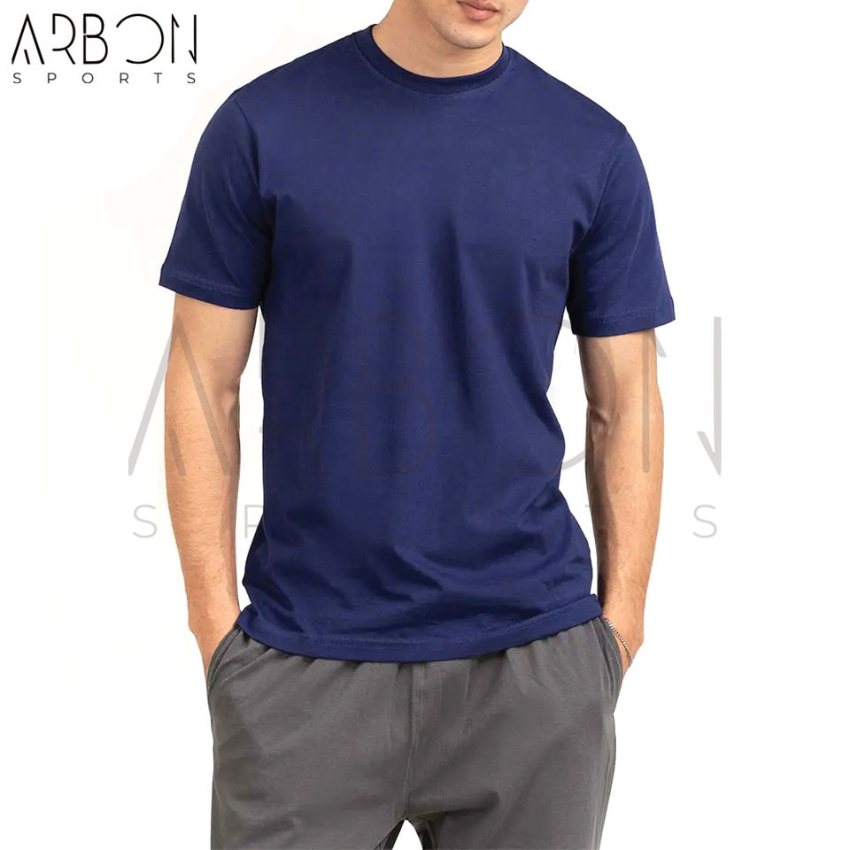 Color azul cuello redondo buena venta haz tu propia ropa de hombre, ropa de calle de tela suave transpirable camisetas de punto de algodón 100% para hombre