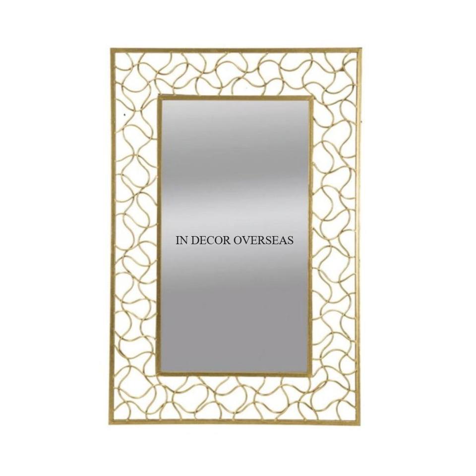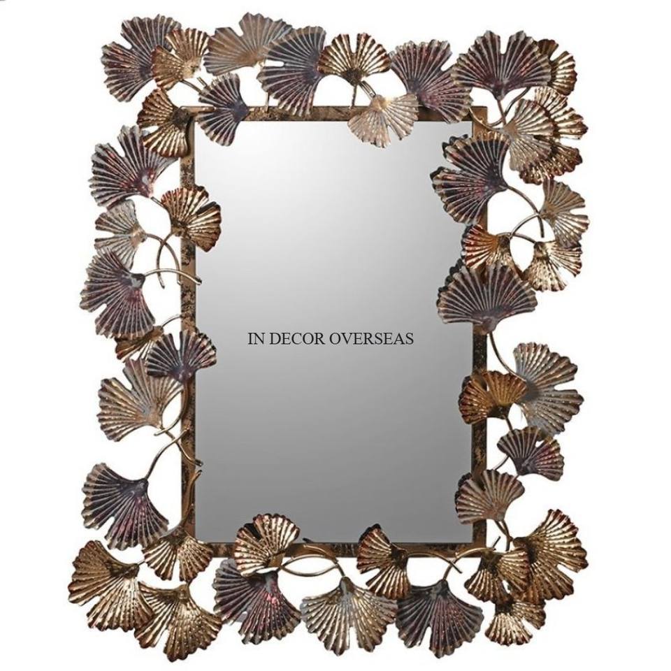 Espejo de decoración de pared de forma redonda enmarcado con diseño de hojas de Gingko de Metal de la mejor calidad chapado en oro y recubierto de polvo de Color azul