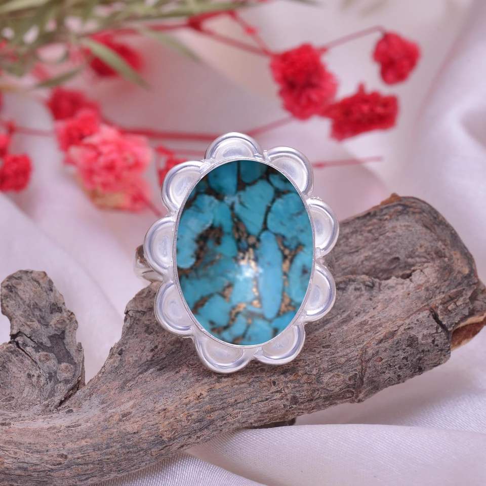 Anillos de turquesa de cobre azul para mujer, anillos de plata de ley 925 sólida, joyería de turquesa con piedras preciosas de cobre azul, joyería de anillo para mujer