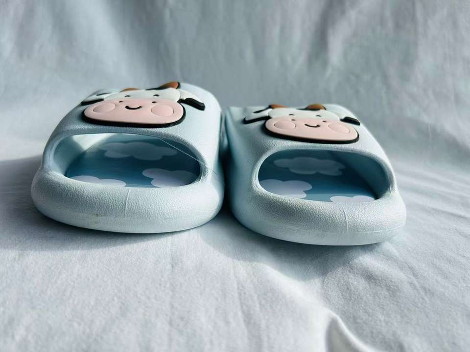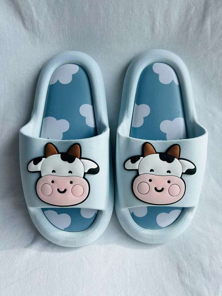 Pantuflas con Estampado de Vaca Azul, Punta Abierta, Suela de EVA Antideslizante, para Todas las Temporadas, Parte Superior de Plástico para Mujer