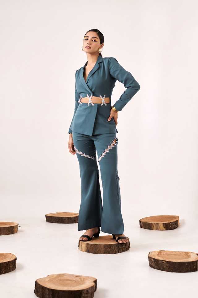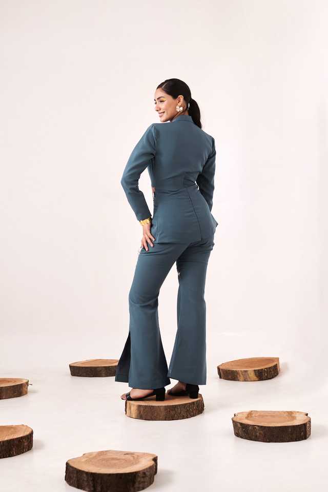 Conjunto de dos piezas con corte azul para mujer, conjunto elegante de dos piezas con diseño moderno, estilo moderno, ajuste cómodo para fiesta.