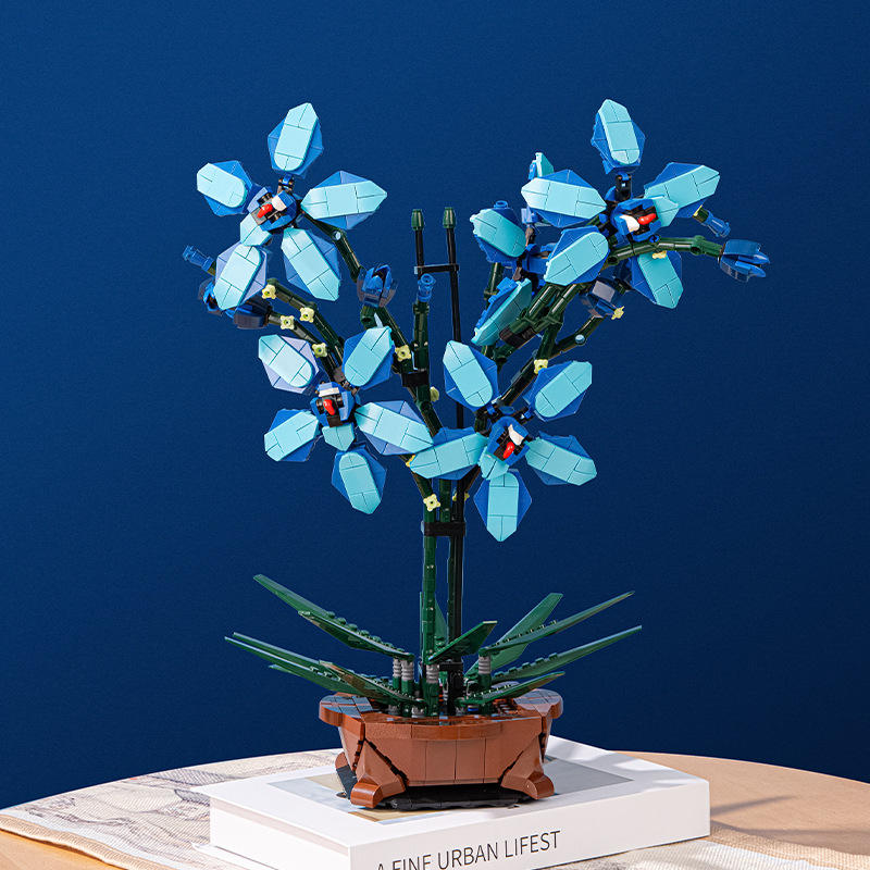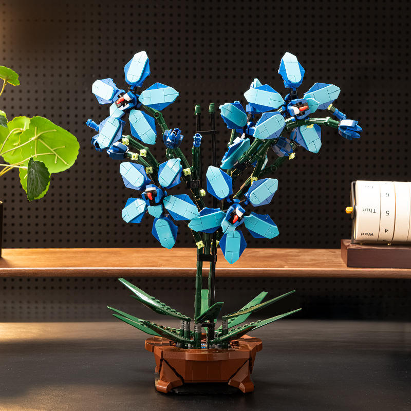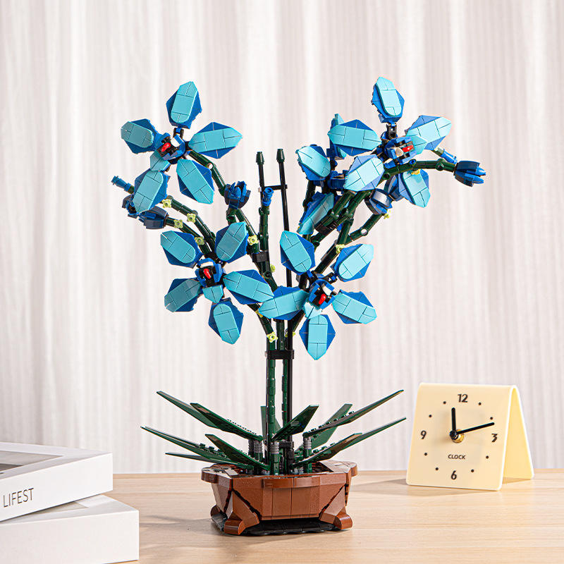 Bloques de Construcción de Planta Artificial de Cymbidium Azul en Maceta, 800 Piezas, Alta Simulación, DIY, Adorno de Interior, Juguete de Planta Artificial