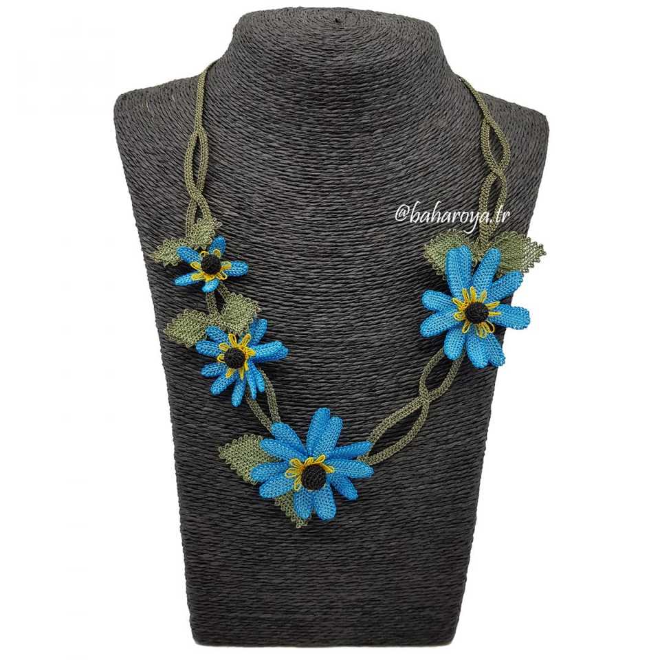 Collar de margaritas azules con detalle de encaje de aguja Accesorio de moda