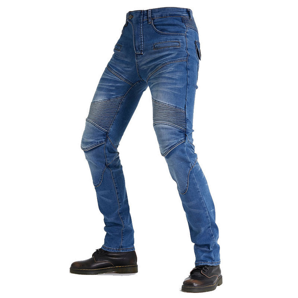 Blue Denim D-Ride Moto Motorcycle Jeans con CE Armor Características transpirables y de secado rápido y paneles plisados para hombres