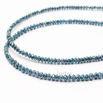 Cuentas de Diamante Azul, Excelente Corte Facetado, Rondelle, Buena Calidad, Certificado por Terceros, Marca LUSTRE, Joyería para Collares, Raro y Natural
