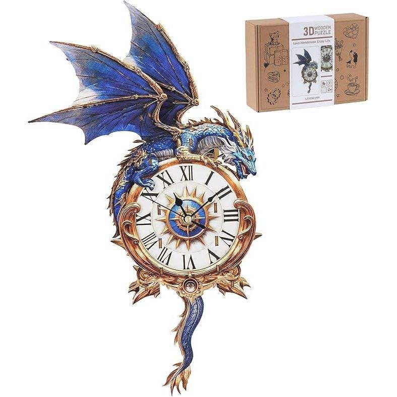 Kit de Modelo de Péndulo de Reloj Dragón Azul, Rompecabezas 3D de Madera para Adultos, Decoración del Hogar, Reloj de Pared DIY K