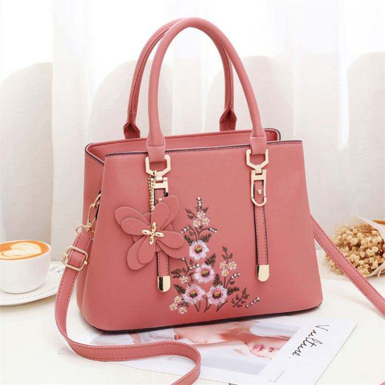 Azul bordado Floral Oficina grandes diseños Tote bolsos de hombro para mujeres al por mayor