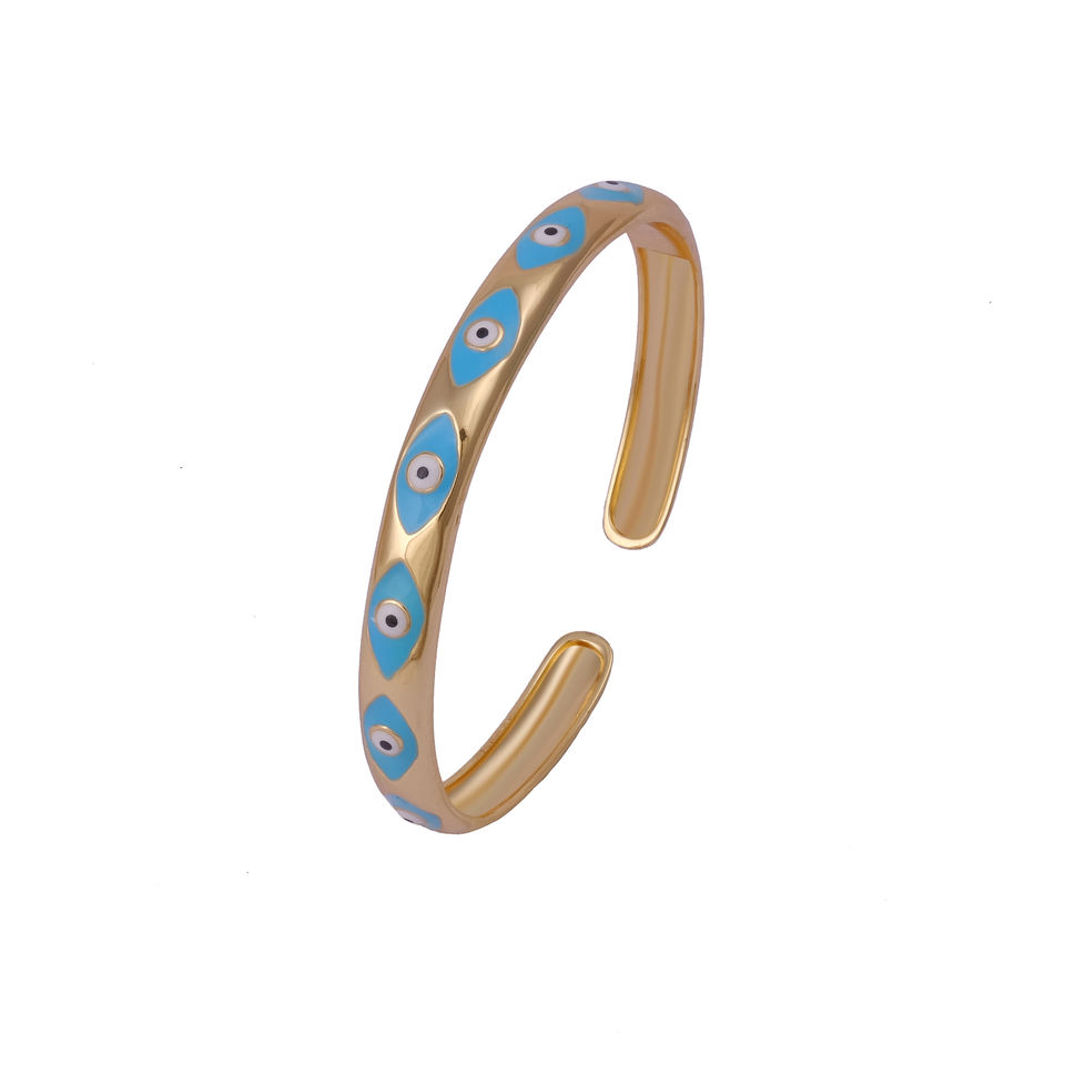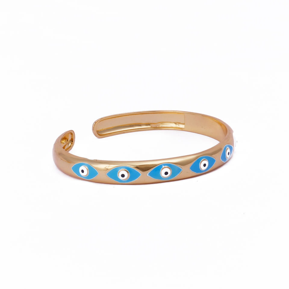 Brazalete de Esmalte con Ojo Turco Azul EL JOYERO para Mujer, Bañado en Oro, Ajustable, Joyería Protectora de Moda, Hecho Principalmente de Latón