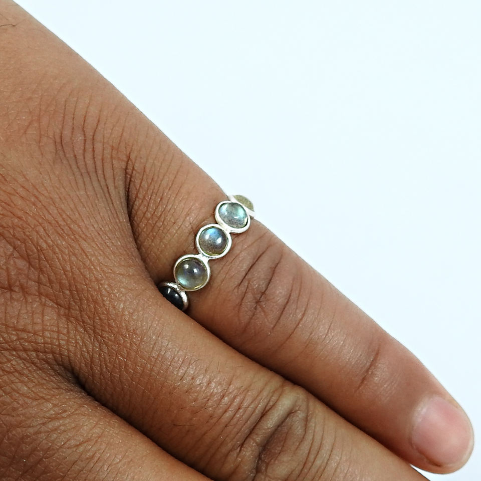 Piedra preciosa de labradorita de Fuego Azul, anillo de banda bonita de forma redonda, joyería hecha a mano de Plata de Ley 925 para uso diario, joyería fina