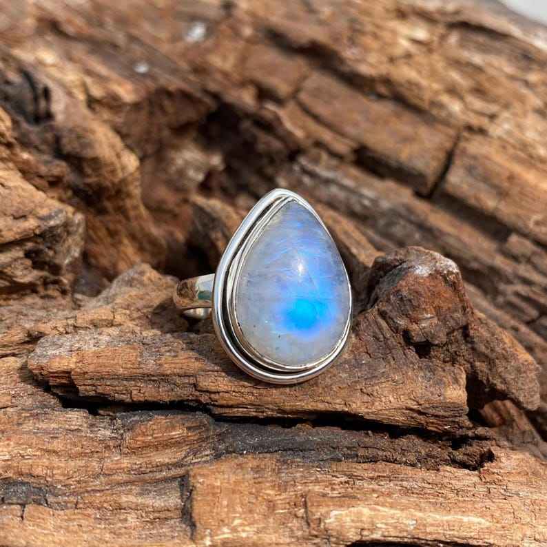 Palabra clave:Anillo de Plata 925 con Piedra Luna Fuego Azul