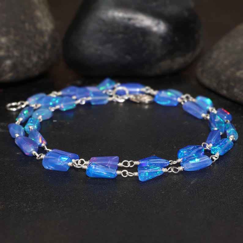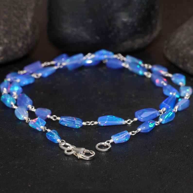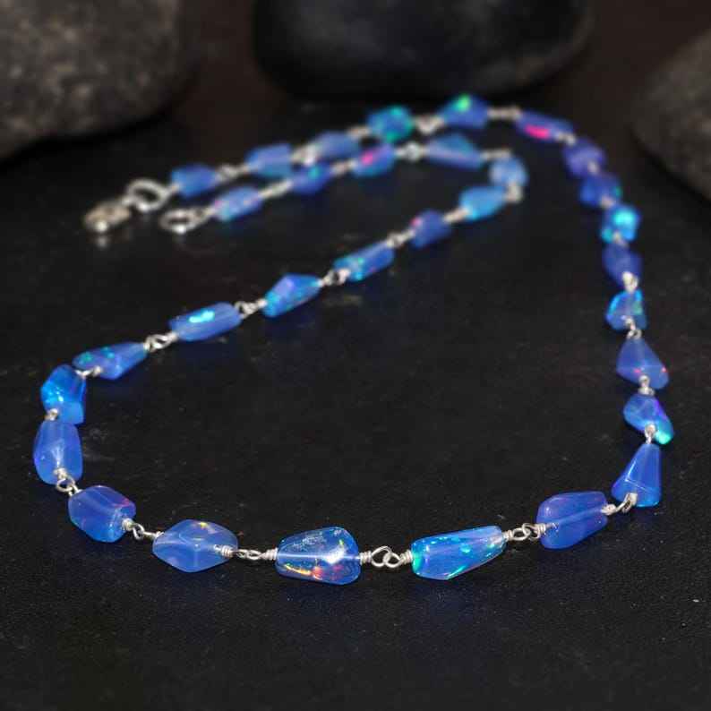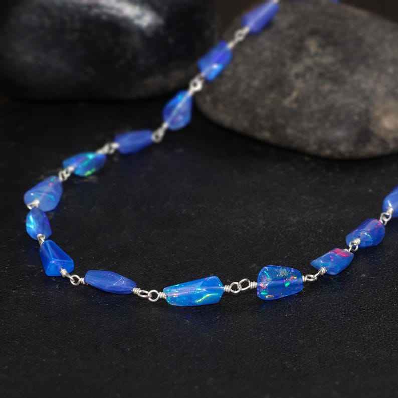 Collar de Ópalo Fuego Azul en Plata 925 con Piedras de Ópalo Fuego Azul.