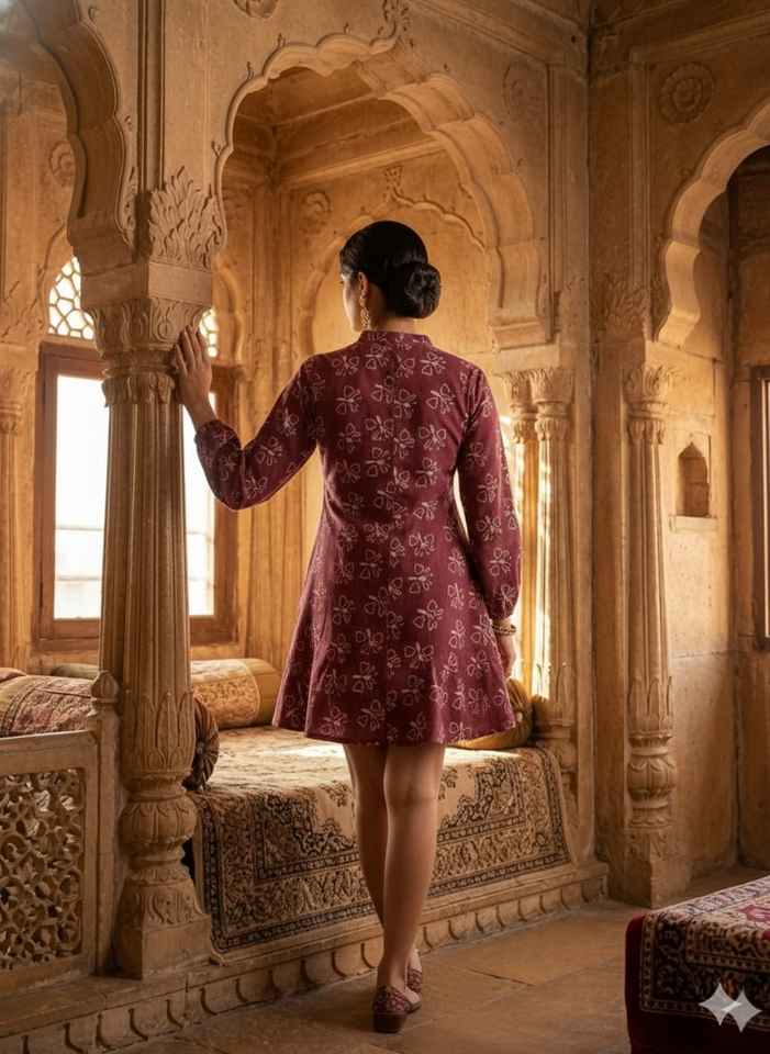 Vestido de Verano de Algodón con Estampado Floral Azul y Volantes, Cuello en V, Estilo Étnico Bohemio, Hecho a Mano en India, para Fiesta, Cintura Natural