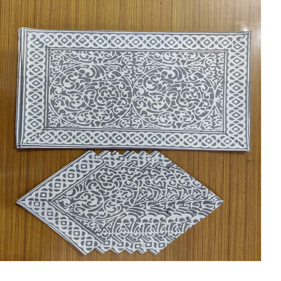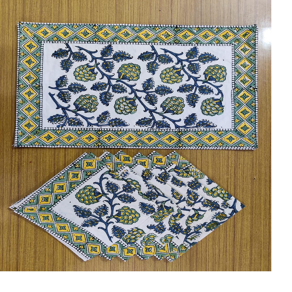 Juego de manteles y servilletas con estampado de bloques de diseño de flores azules, telas de algodón 100%, grado de calidad para reventa