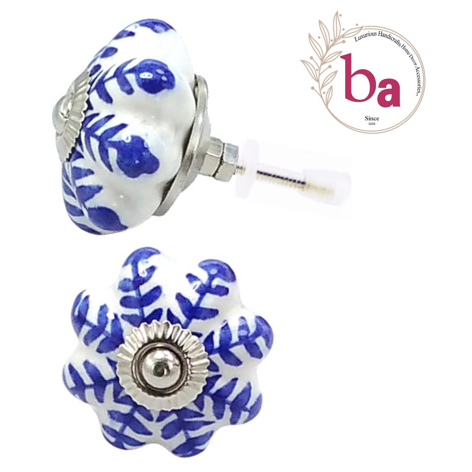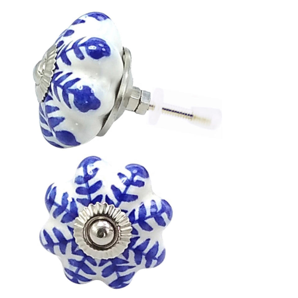 Perillas de cerámica de melón de flores azules, herrajes de níquel para cocina, dormitorio, almacén al aire libre, manija de armario de cajón de tocador escolar