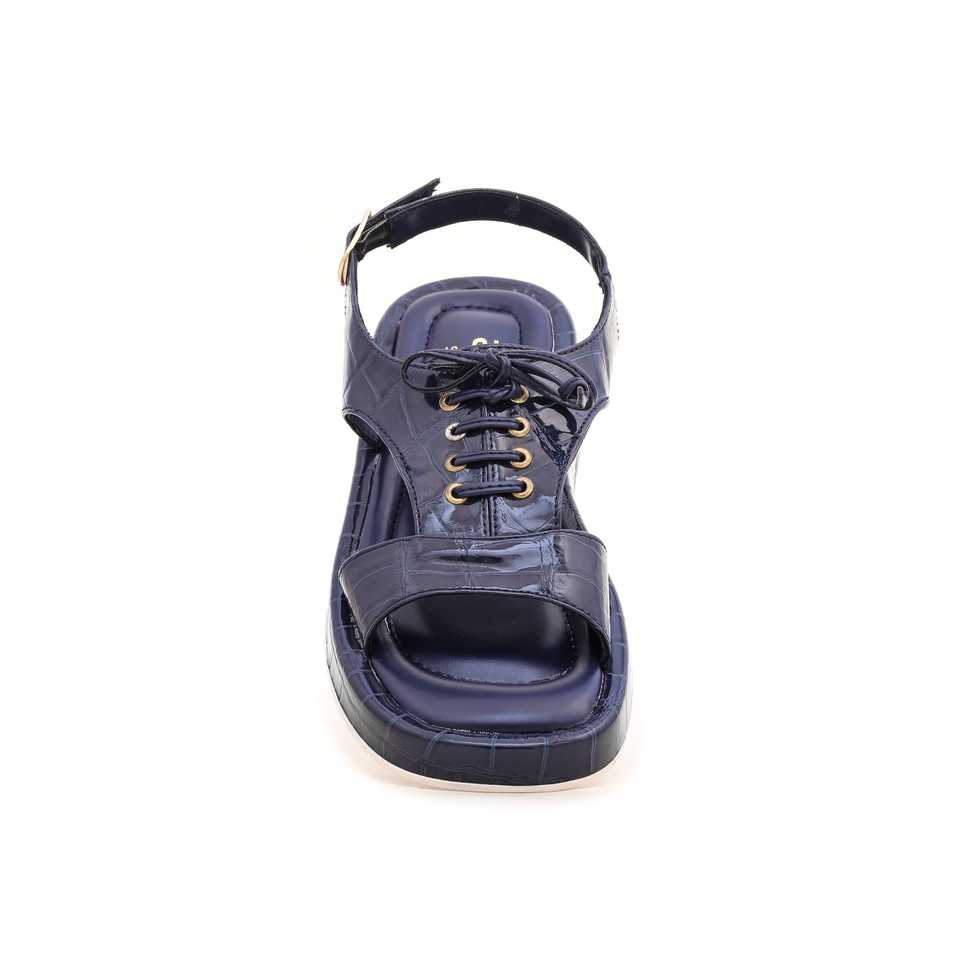 Sandalias formales azules de tacón para mujer con correa en el tobillo con punta cuadrada FR5142 Material superior de piel Estilo de plataforma