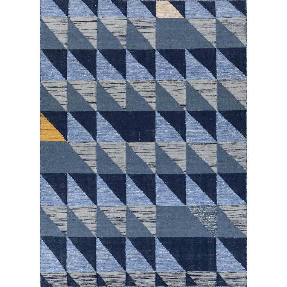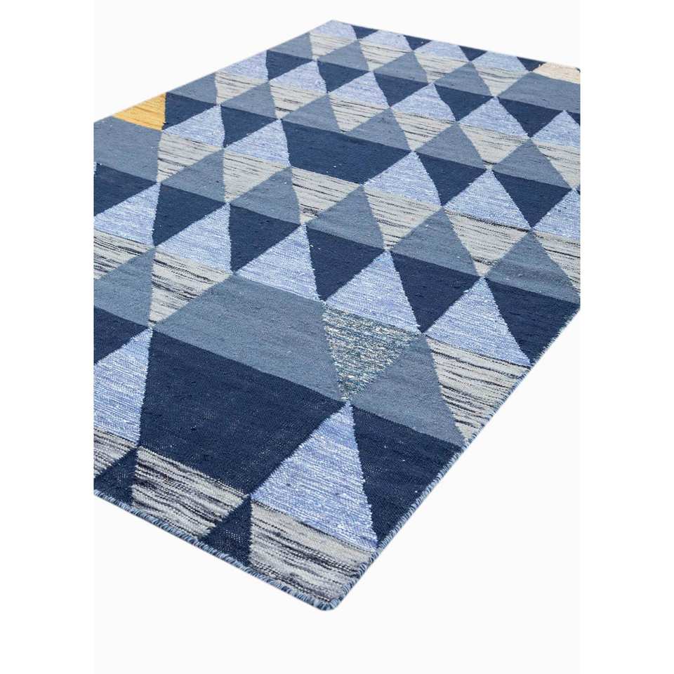Alfombras de Lana con Diseño Geométrico Azul, Hechas a Mano, Tejido Plano, para Dormitorio/Sala de Estar, Rectangulares, para Pasillo, ADWL-13116, para Adolescentes