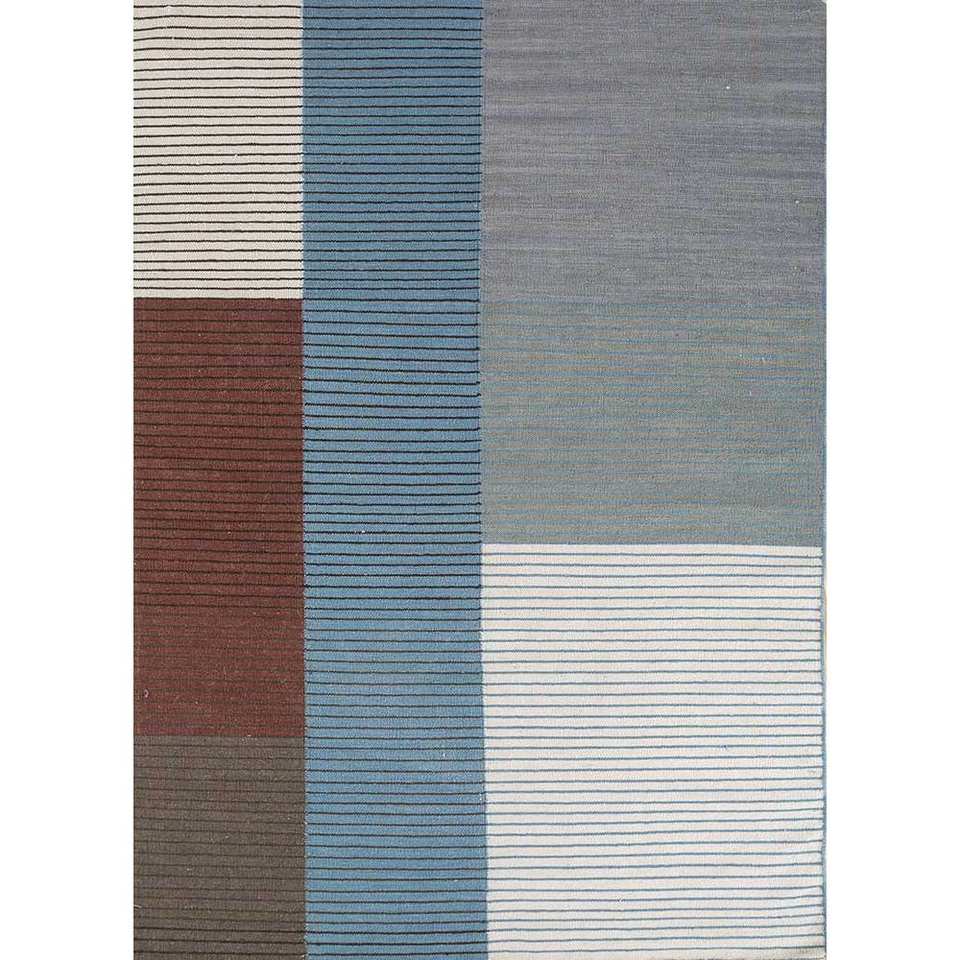 Alfombras de Lana con Diseño Geométrico Azul, Hechas a Mano, Tejido Plano, para Dormitorio/Sala de Estar, Rectangulares, para Pasillo, ADWL-13061, para Adolescentes