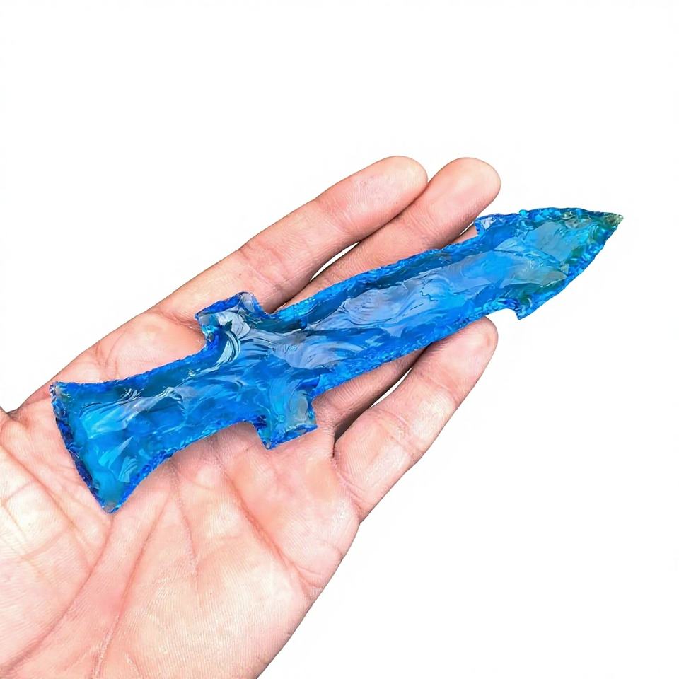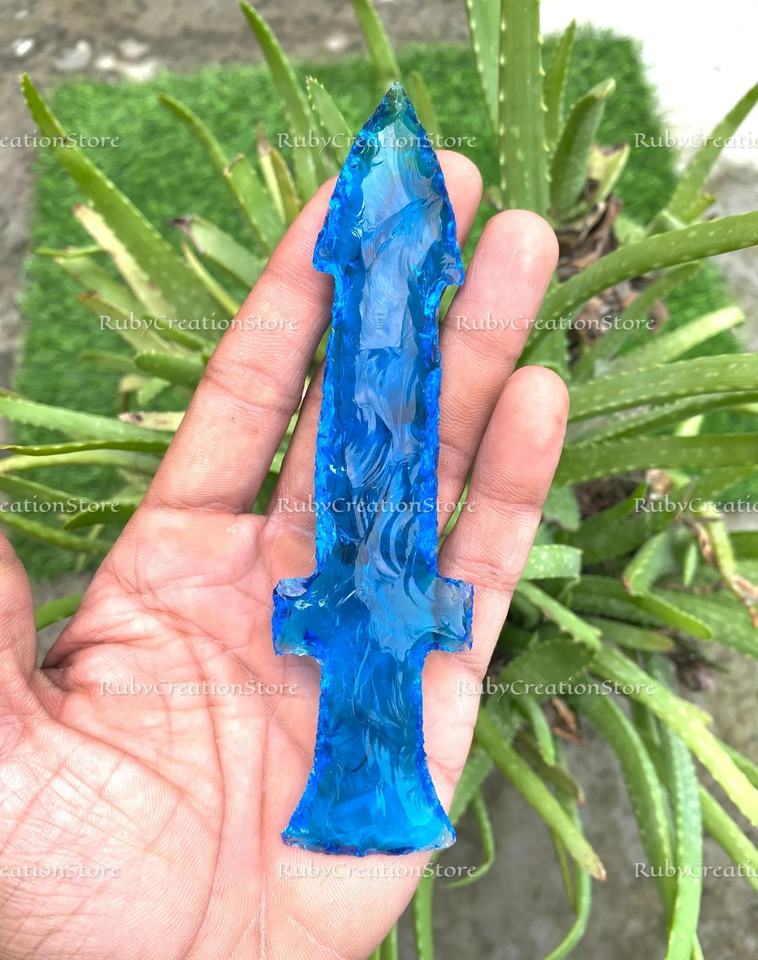 Juego de Cuchillos de Cristal Azul - Decoración de Espada de Cristal de Fantasía, Exhibición de Cuchillo de Piedra Tallada a Mano, Regalo Único de Decoración para el Hogar