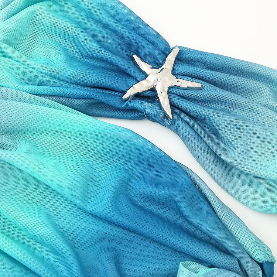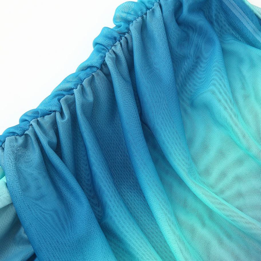 Vestido Casual de Verano para Mujer con Lazo Lateral en Degradado Azul, Diseño Hueco, Malla sin Tirantes, Vestidos Casuales a la Moda